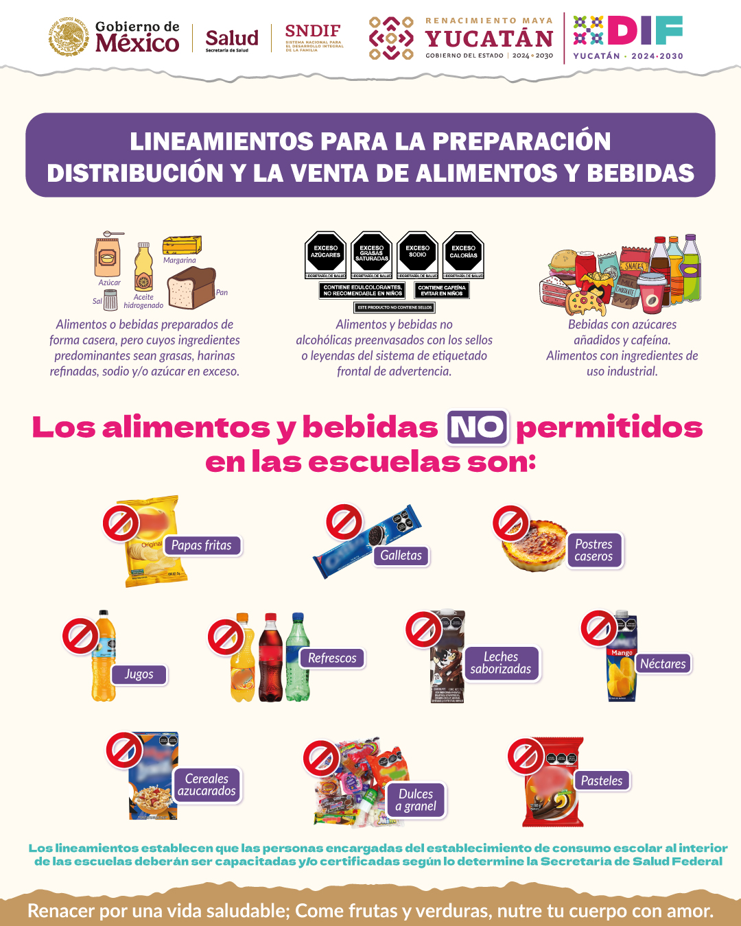 Es importante que no solo en casa te alimentes de manera saludable, también debes hacerlo fuera de ella, con esta herramienta puedes aprender que alimentos no están permitidos consumir dentro de la escuela, esto va a mejorar tu salud y el entorno escolar, ¡Compártelo con tus amigos y maestros!